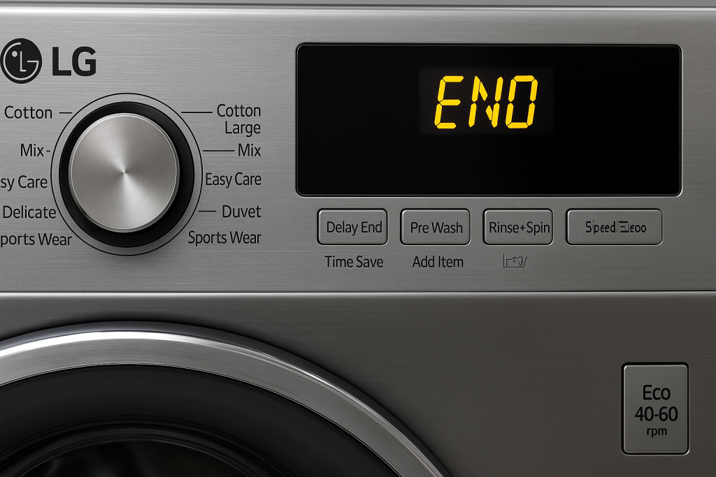 ارور end لباسشویی ال جی : ظاهر شدن عبارت END روی صفحه نمایش لباسشویی ال جی معمولاً نشانه وجود خرابی نیست.